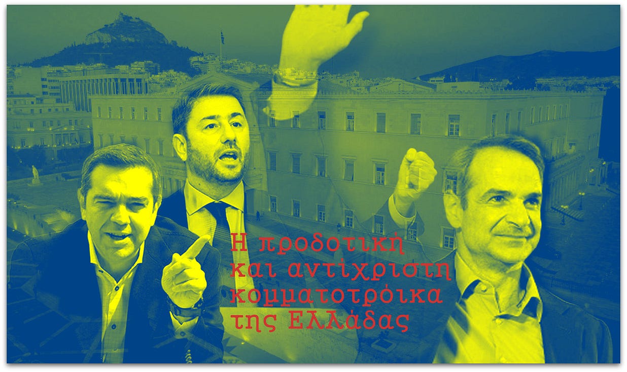 Τον νεοταξίτικο κοινό παρονομαστή ρητορικής των κομμάτων που διεκδικούν είσοδο στην Βουλή, ο οποίος τροφοδοτείται από μια υπερεθνική ατζέντα με θέσεις π.χ. υπέρ της αποτελεσματικότητας και ασφάλειας των πειραματικών εμβολιασμών (προσοχή: είναι αδιάφορο αν αποδοκιμάζεται η υποχρεωτικότητα), υπέρ του ψηφιακού κράτους και της κατάργησης των μετρητών, υπέρ της τεχνητής νοημοσύνης, υπέρ της δήθεν ανθρωπογενούς κλιματικής αλλαγής, υπέρ του γάμου των ομοφυλοφίλων και της αναγνώρισης του τρίτου-ουδέτερου φύλου, υπέρ του φανατικού φεμινισμού, υπέρ της ανάγκης ένωσης των εκκλησιών, ώστε μέχρι το 2025 να επιβληθεί η παγκόσμια θρησκεία, υπέρ της ακώλυτης εισροής μεταναστών στο εσωτερικό των χωρών, υπέρ της ζωοποίησης των ανθρώπων και του εξανθρωπισμού των ζώων κ.λπ.
