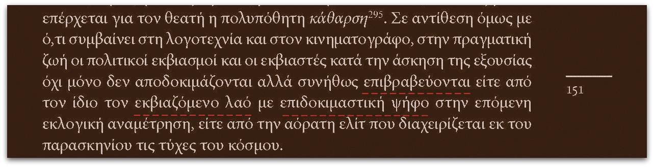 «Σε αντίθεση όμως με ό,τι συμβαίνει στη λογοτεχνία και στον κινηματογράφο, στην πραγματική ζωή οι πολιτικοί εκβιασμοί και οι εκβιαστές κατά την άσκηση της εξουσίας όχι μόνο δεν αποδοκιμάζονται αλλά συνήθως επιβραβεύονται είτε από τον ίδιο τον εκβιαζόμενο λαό με επιδοκιμαστική ψήφο στην επόμενη εκλογική αναμέτρηση, είτε από την αόρατη ελίτ που διαχειρίζεται εκ του παρασκηνίου τις τύχες του κόσμου».
